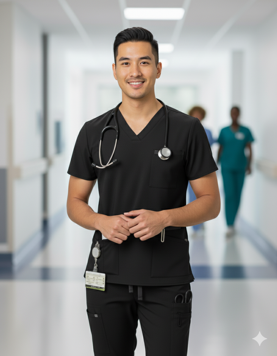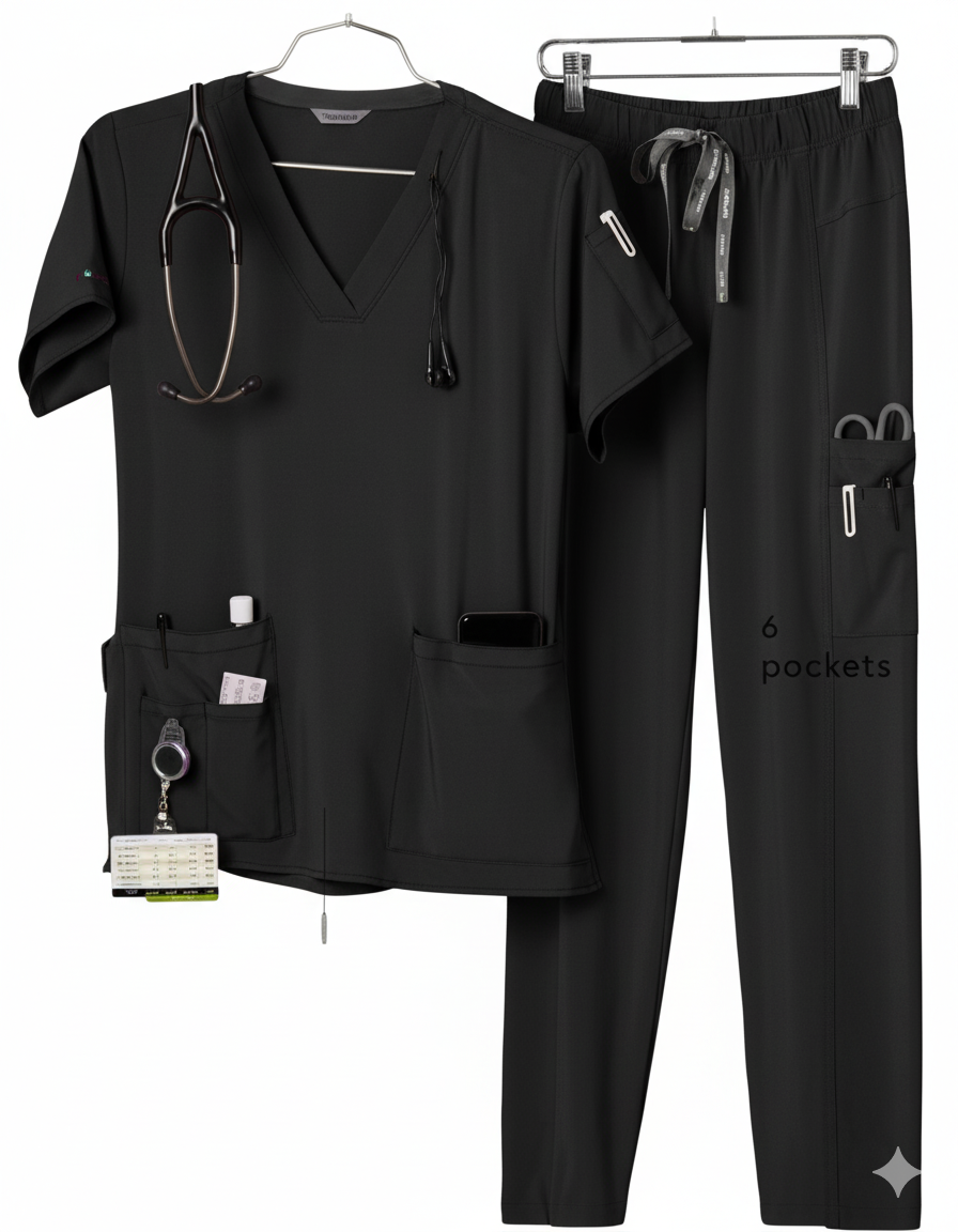 MedStretch Premium Unisex Stretchable Black Scrub Set With Cargos